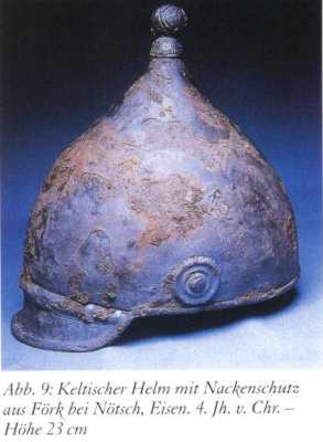 Die Helme scheinen mehr Prunkstücke gewesen zu sein, die weniger zum Schutz beim Kampf geeignet waren, denn oft kämpften die Kelten nackt - wie die griechischen Olympiakämpfer im Dienste der Götter.