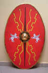 Schilde aus Holz mit Buckeln und Rändern aus Eisen.