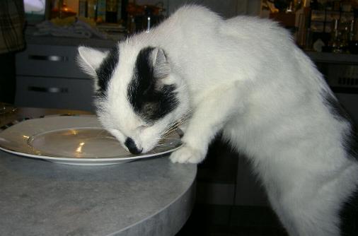 noch, wie ich Dich vor den riesigen Fressnapf voller Katzenfutter